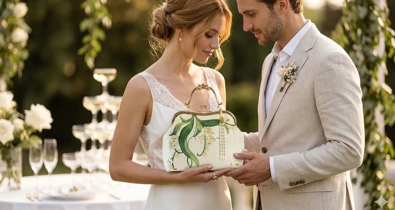 Lily of the Valley Embroidered Kiss-Lock White Handbag with Pearl Tassel