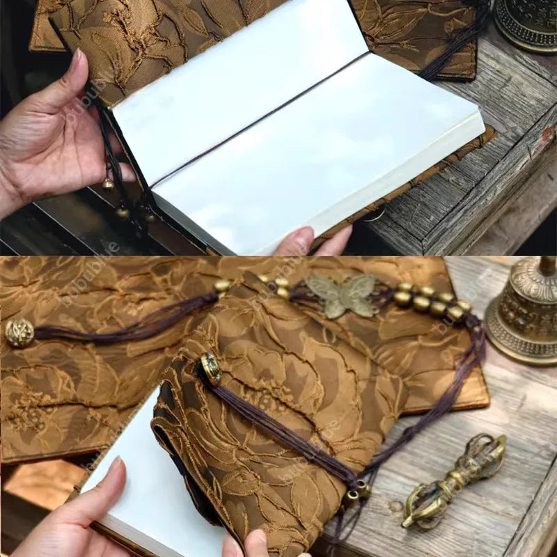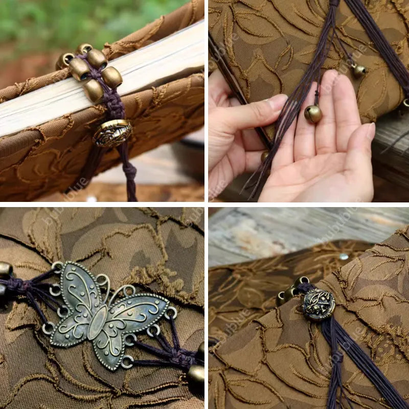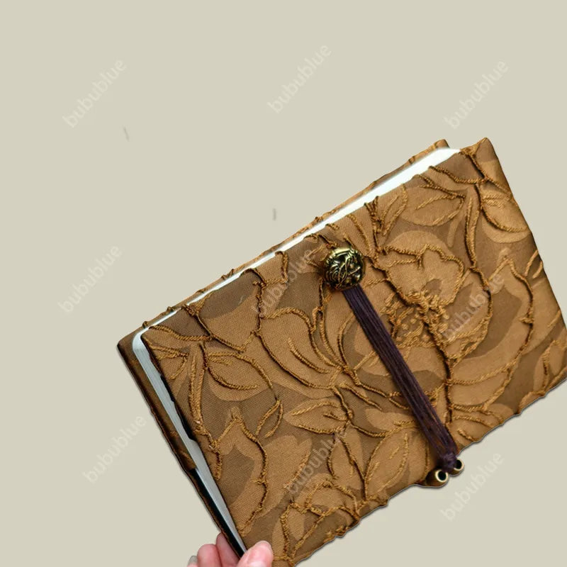Inspired by falling leaves and quiet autumn air, this handmade book cover captures a moment where time seems to pause. Antique brass details, soft jacquard textures, and a butterfly at rest echo the beauty of nature aging gently—calm, poetic, and deeply grounding.