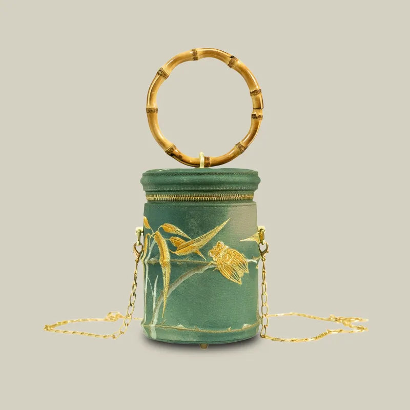 Cicada Song Embroidered Green Mini Bucket Bag
