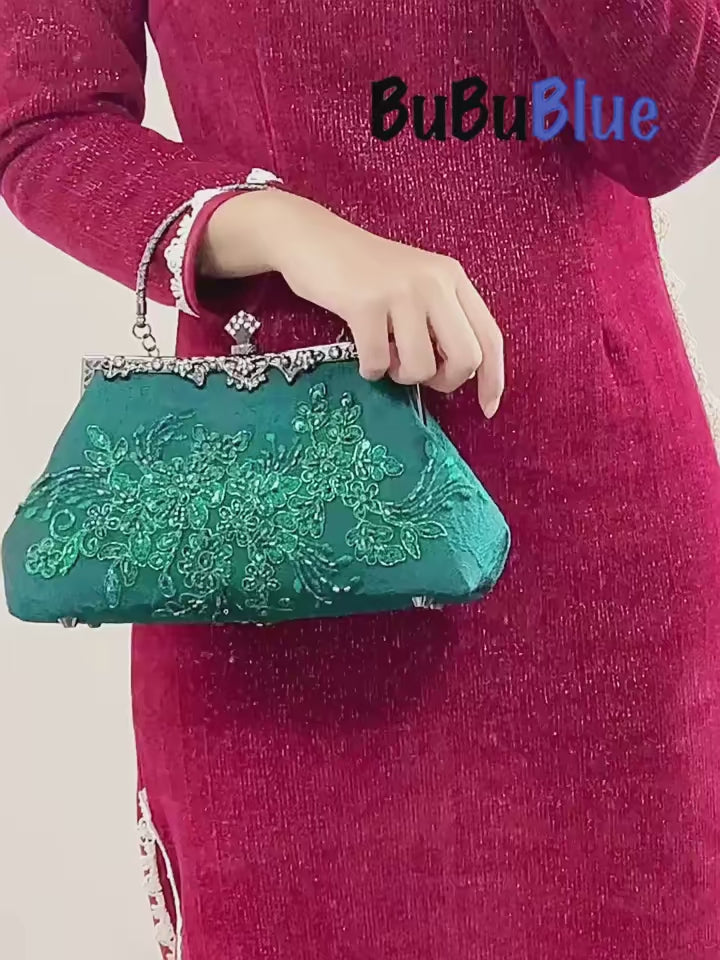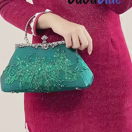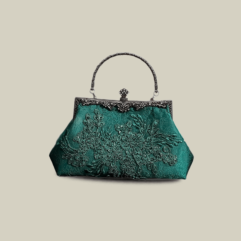 Emerald Embroidery Luxury Elengant Handbags With Vintage Metal Handle