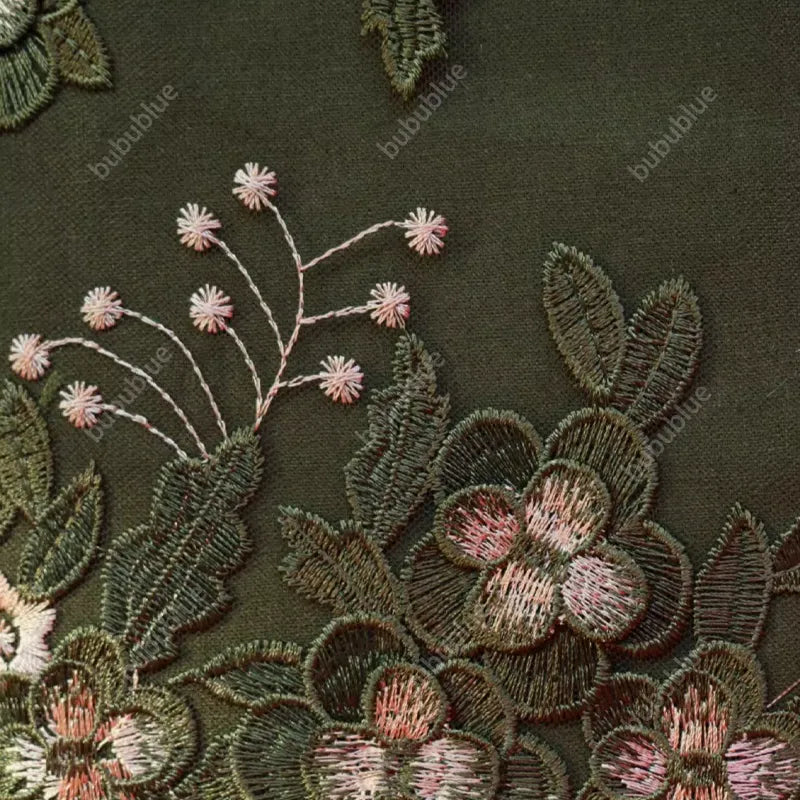 - Material: Embroidered cotton base fabric + mesh embroidery