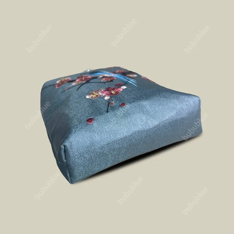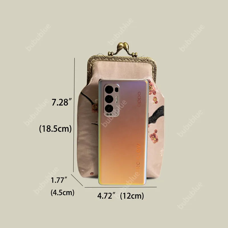 Inspired by the peaceful charm of nature, this phone bag captures a joyful moment—a magpie resting on blooming branches. Each stitch is handmade with care, preserving a little scene of hope and harmony. With its vintage kiss-lock frame and silky finish, it keeps beauty close by, bringing calm and delight to everyday life.