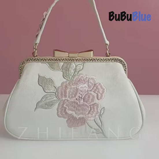 Inspired by the graceful begonia flower, this handmade satin handbag captures the elegance of nature in a timeless square silhouette. Its vintage bow-shaped kiss lock and embroidered details create a harmonious blend of refinement and charm, perfect for both daily wear and special occasions.