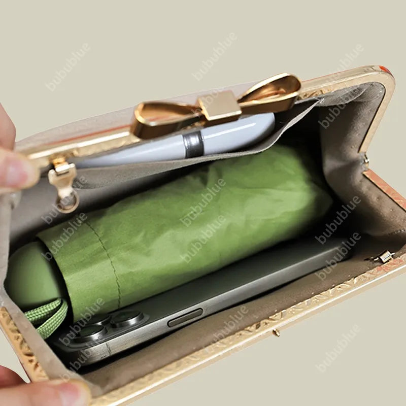 - Vintage bow-shaped kiss lock for timeless beauty