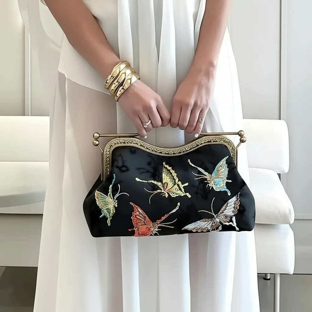 Step into timeless charm with this vintage butterfly embroidered handbag. Featuring a romantic metal kiss-lock and garden-inspired details, it's perfect for elegant outings or daily style. Pair it with our coin purses for a full vintage look.